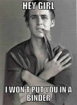 Our text explains, “Working together, fan identification and media publicity function to mask or bridge the gap between the star and the audience, which also serves an ideological purpose” (p.428). These memes essentially create an ideal man: sensitive, understanding, sexual, and charming. Gosling becomes a blend of the dominant ideal of masculinity: “strength, toughness, attractiveness, heterosexuality, and whiteness” (p.371) and the compassionate companion who females desire to fulfill needs of comfort and love.